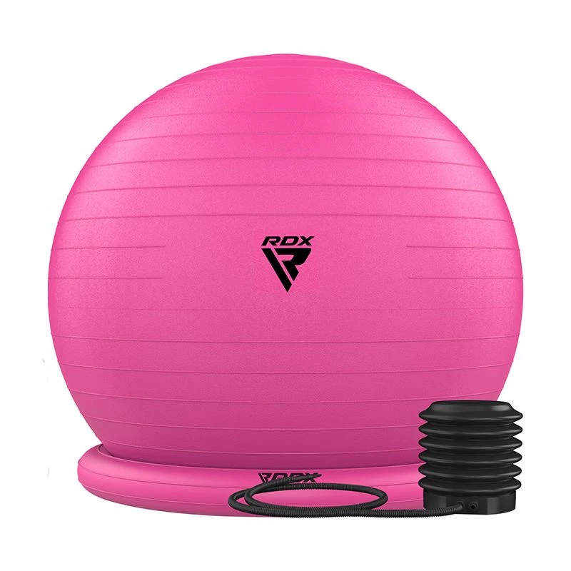 Give your exercises an equally creative and functional makeover by adding the fitness ball with base into your workouts. Step up your calisthenics, yoga, cardio and even strength training routines with RDX’s yoga ball and Balance Ring Base. Manufactured from anti-burst, premium quality PVC to sustain weight (up to 250kg) while retaining smooth elasticity and slowly deflate when punctured instead of exploding into pieces. Water-resistant and free from toxins to provide a wholesome workout experience. The yoga ball base ring provides superb control and stability for exercises that require strenuous exertion or even relaxed poses. The removable inflatable ring base (weighing 800g) allows you to perform ball-only routines – including aerobics, yoga and physio ball exercises. Soft, anti-slip surface with 360° slip-resistant lines pattern deliver superior grip to prevent unwanted slipping and sliding of the gym ball. Ideal fitness ball for home gym to achieve whole body exercises, improve balance and relieve pain. Recommended for use during pregnancy by providing a comfortable sitting surface for correcting posture and relieving pressure off the spine. Great for birthing exercises to prepare for delivery.