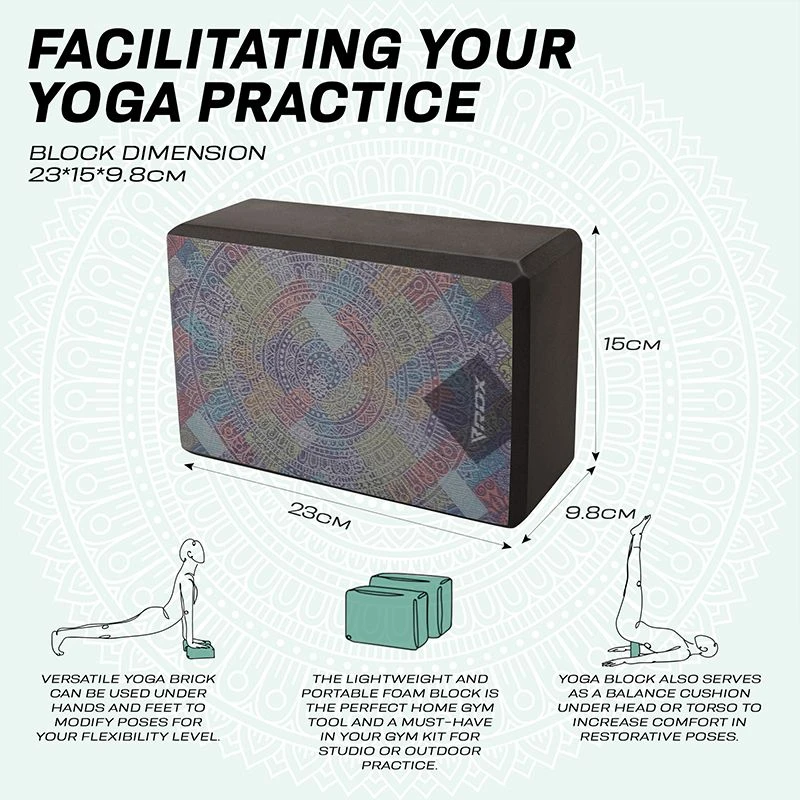 - FACILITATING YOUR YOGA PRACTICE – Versatile yoga brick can be used under hands and feet to modify poses for your flexibility level. Ideally sized (23*15*9.8cm) yoga block also serves as a balance cushion under head or torso to increase comfort in restorative poses. The lightweight and portable foam block is the perfect home gym tool and a must-have in your gym kit for studio or outdoor practice.