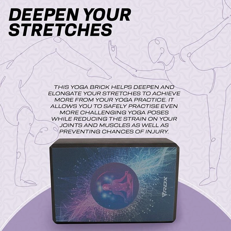 Made for beginner and intermediate yogis alike, this sturdy foam yoga block provides strong support for your bridge poses, and comfortable lift to perfect your alignment in the crescent moon stance. Cultivate healthy energy flow by bringing balance and alignment in your form and everyday life with the RDX EVA Foam yoga blocks. Add this optimally sized yoga block (23*15*9.8cm) to your home gym essential and yoga accessories for increased versatility in your practice.