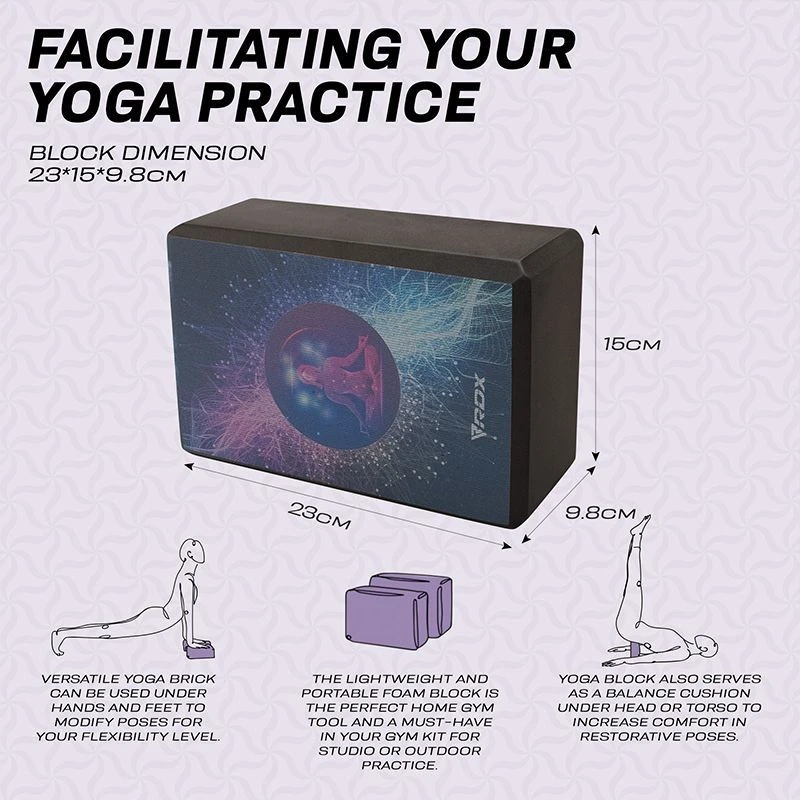 - FACILITATING YOUR YOGA PRACTICE – Versatile yoga brick can be used under hands and feet to modify poses for your flexibility level. Ideally sized (23*15*9.8cm) yoga block also serves as a balance cushion under head or torso to increase comfort in restorative poses. The lightweight and portable foam block is the perfect home gym tool and a must-have in your gym kit for studio or outdoor practice.