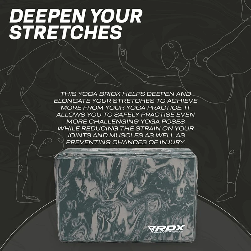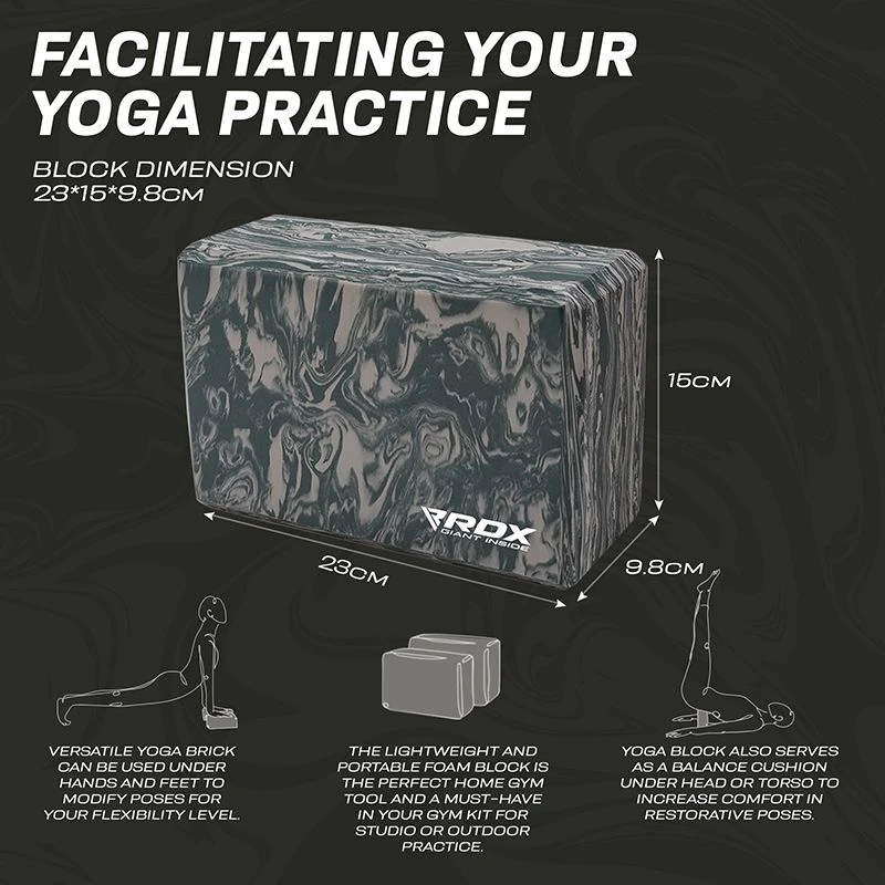 Add this optimally sized yoga block (23*15*9.8cm) to your home gym essential and yoga accessories for increased versatility in your practice. Made for beginner and intermediate yogis alike, this sturdy foam yoga block provides strong support for your bridge poses, and comfortable lift to perfect your alignment in the crescent moon stance. Add this optimally sized yoga block (23*15*9.8cm) to your home gym essential and yoga accessories for increased versatility in your practice. Cultivate healthy energy flow by bringing balance and alignment in your form and everyday life with the RDX EVA Foam Grey/black yoga blocks.