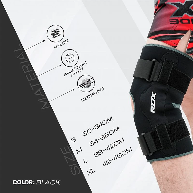 The knee brace is made from top of the line nylon and neoprene material that lasts long during grueling workouts. Our neoprene knee support is easy to use and allows you to touch new heights. Available in different sizes, patella knee support provides perfect alignment for your knee to perform high-intensity workouts. Ideally designed using aluminum alloy, knee wraps are perfect for physical therapy, rehabilitation & exercises at home. Open patella design of knee support for arthritis provides added support and neoprene construction ensures therapeutic compression to promote blood circulation and heal ACL & PCL injuries. Knee straps for joint pain are equipped with advanced hinge system for extra stability and comfort during home gym workouts. Stay comfortable and moisture free through the toughest days and workouts with antimicrobial and airflow vented tech. A must-have in your medical workout kit, knee braces are latex-free, lightweight, easy to carry and can easily concealed under clothes. Comes in black color and S, M, L & XL sizes. Small size is of 30-34cm while Medium, Large & XL are 34-38cm, 38-42cm & 42-46cm respectively.