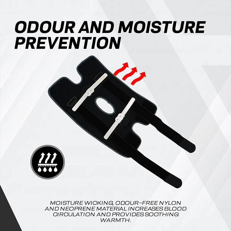 - ODOUR AND MOISTURE PREVENTION– stay comfortable and moisture free through the toughest days and workouts with antimicrobial and airflow vented tech. Moisture-wicking, odor-free nylon and neoprene material increases blood circulation ensuring soothing warmth. Knee brace for running is perfect for home gym.