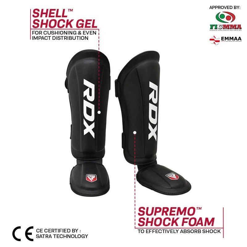 RDX T1 MMA black shin instep guard is the perfect choice for combat athletes. This champion-inspired shin pad gives you an edge over your opponents with its light, nimble design while providing maximum protection from kicks and blows. Our RDX T1 MMA Black Shin Instep Guard features polygonal fusion foam to evenly distribute shocks and excessive force while the moisture management lining prevents sweat build-up and unpleasant odors. From increased comfort during training sessions to improved agility and technique, the RDX T1 skin instep guard is the perfect companion for athletes striving to take their game to the next level.